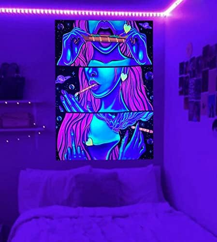 💟 Black Light Reactive💟 Blacklight cool girl tapestry adopts advanced HD print. Don’t fade. Feathering vivid colors, crisp lines and delicate hemming, rather decorative vertical tapestry, perfect bedroom wall decor choice.