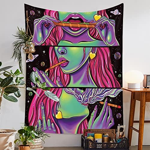 💟 Multipurpose💟 This hippie hippy wall tapestry trippy smoke cool girl art is great for wall hangings, wall decoration, bedspread, porch hangings, tablecloth, sofa covers, dorm decorations, ceiling decor, window curtain and more! GUARANTEE: 7 x 24 hours after-sales service, if you are not satisfied, 100% refund money. We would be honored to have you as our customer. Welcome to JHDSTORE’s premium quality and worth price vertical tapestry.