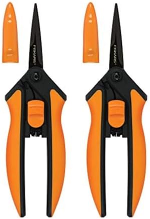 INCLUDES: 2 pairs of Fiskars Micro-Tip Pruning Snips with blade covers; Full lifetime warranty