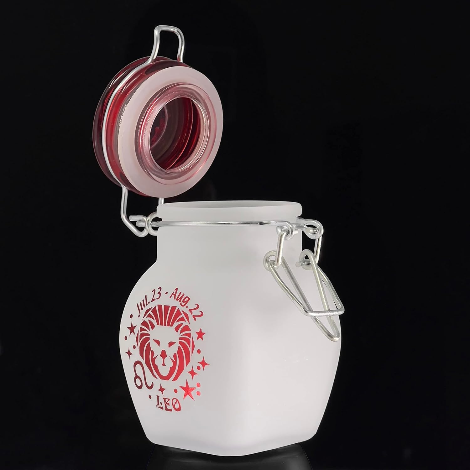 Made of thick, lab-grade borosilicate frosted-glass, this jar is bound to a colorful glass lid with stainless steel and will stand the test of time