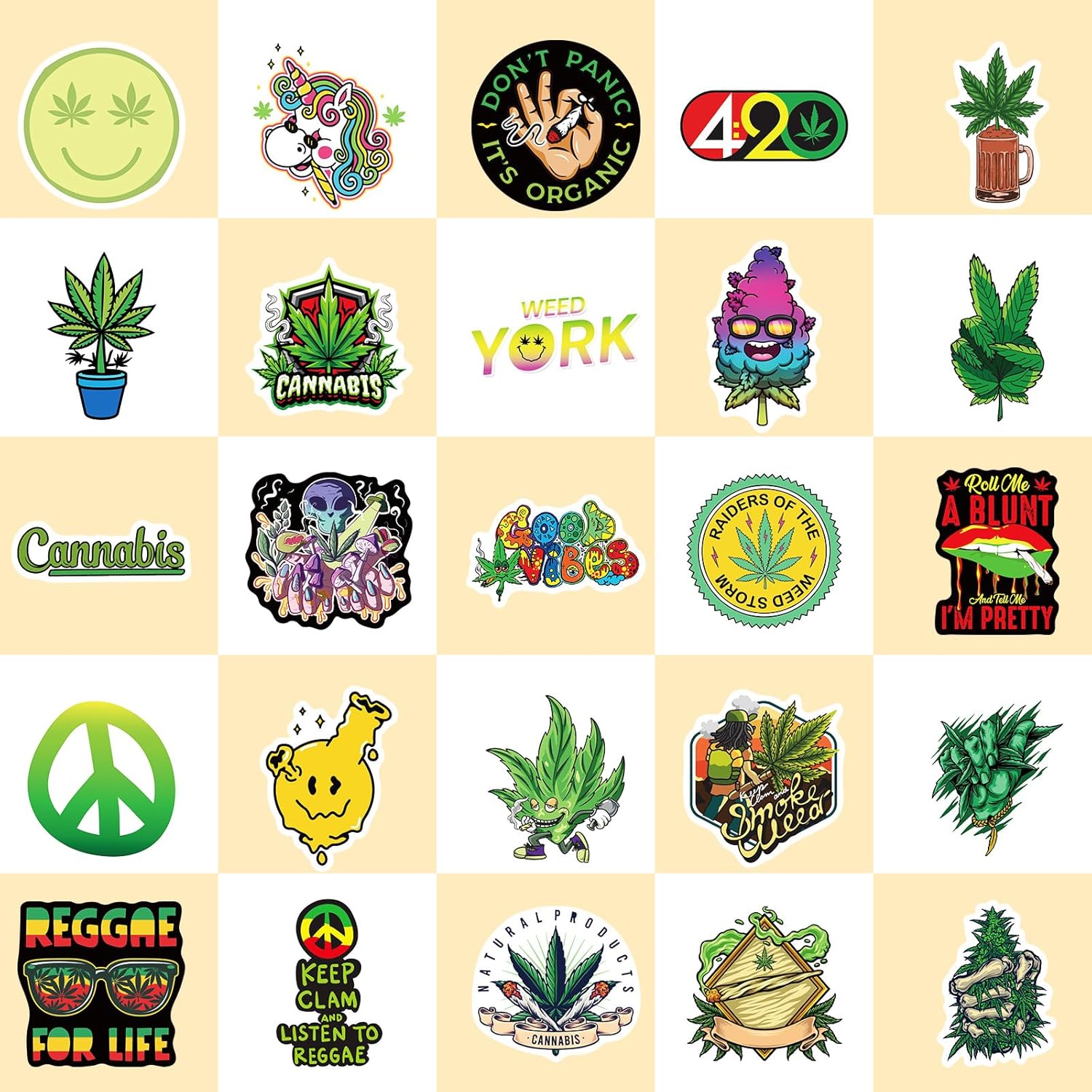 ️[100 Pcs fresh and lovely Weed Stickers ]: 100 different Weed Stickers per package. Each pattern is carefully designed by the designer, which is very beautiful. I’m sure you will like these patterns. The three colors are arranged gradually.